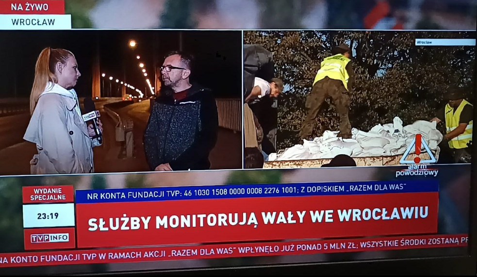 Rysunek 20. Wywiad dla TV Polsat na temat roli liderów powodziowych i ich znaczeniu dla działania kryzysowego w trakcie występowania zjawisk powodziowych.